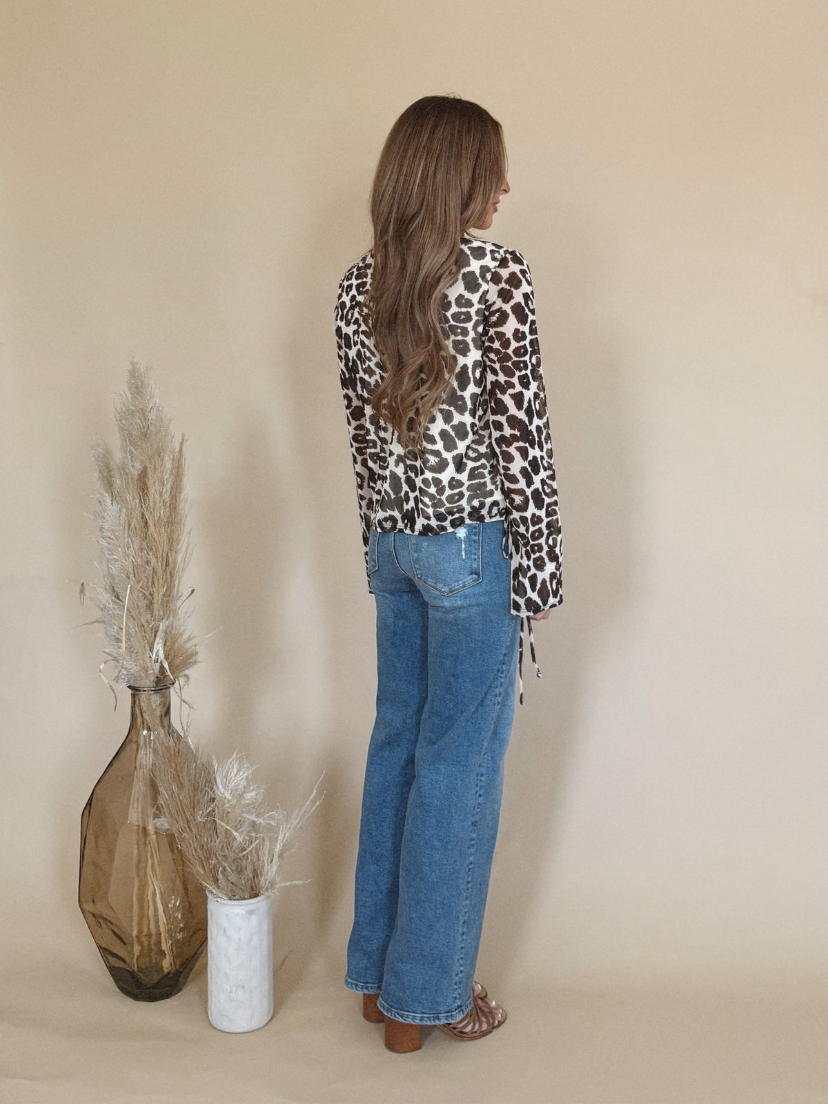 The Georgina Top is a leopard bell sleeve top with tie front detail.