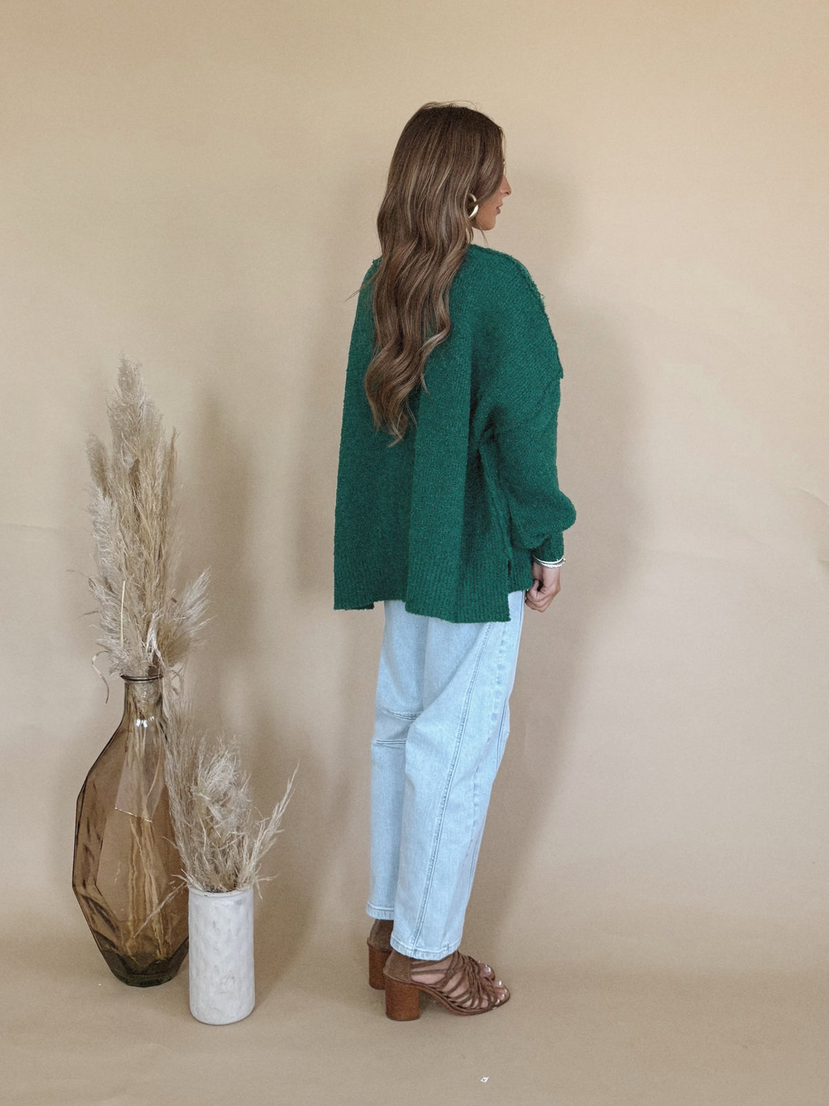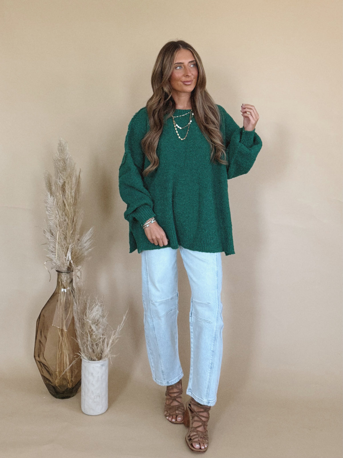 The Maya Sweater is an oversized long sleeve knit sweater.