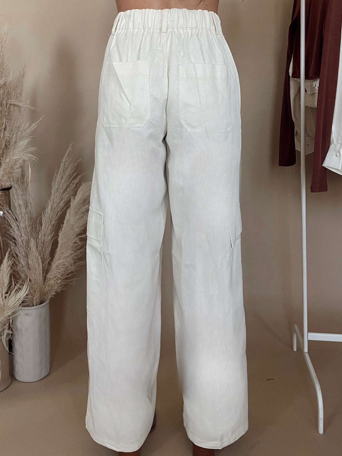The Quinleigh Pants are a cream colored cargo pants.