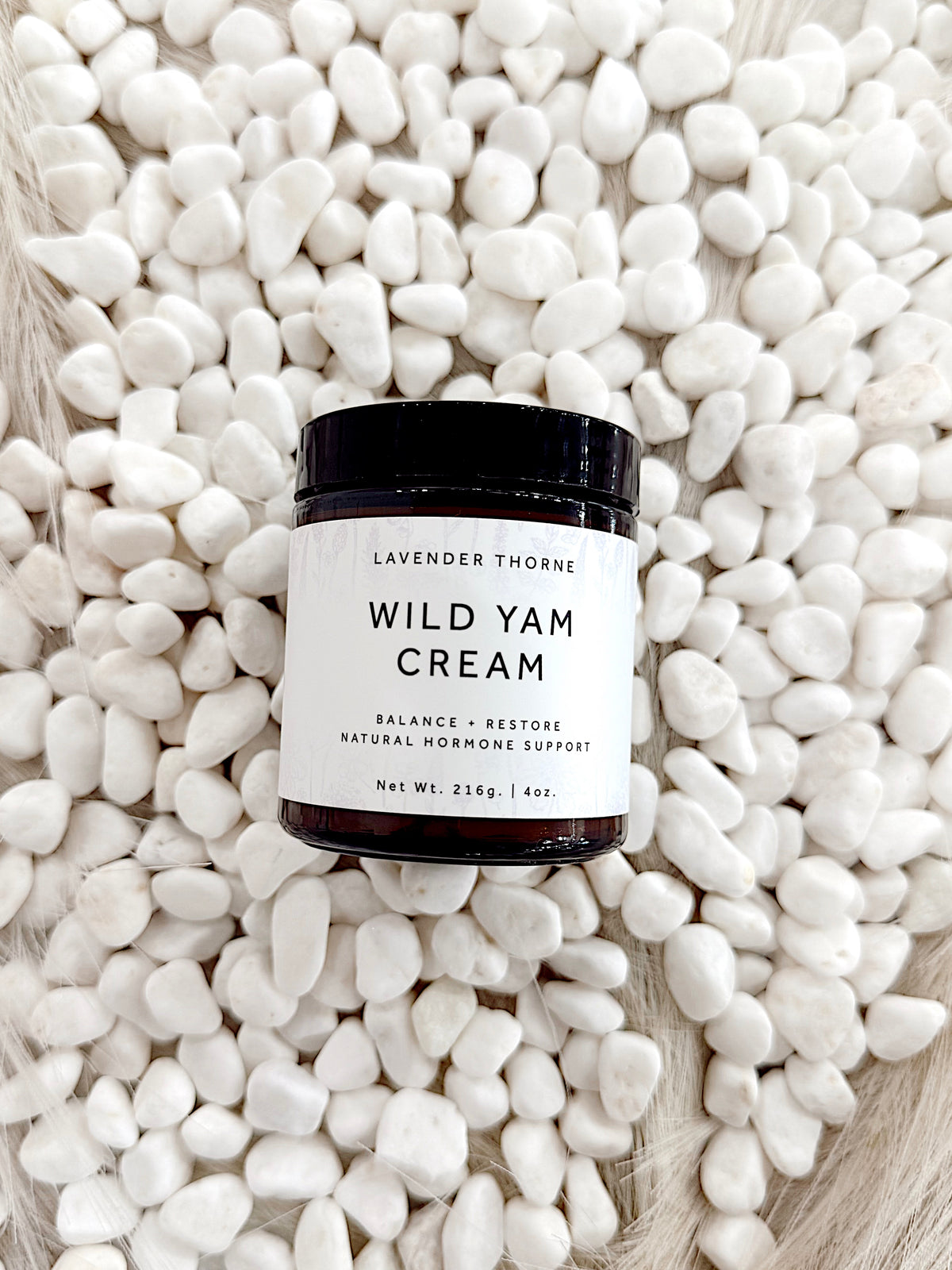 The benefits of Wild Yam Cream include, regulating hormones, relieving perimenopause, menopausal ,and postmenopausal symptoms, balancing out PMS symptoms, may aid with fertility, PCOS, postpartum and all around health.