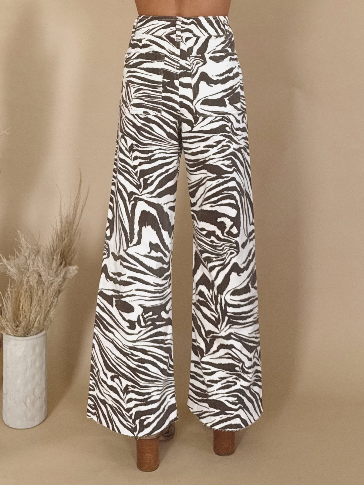 The Zailey Pants are a zebra print pants that are brown and cream.