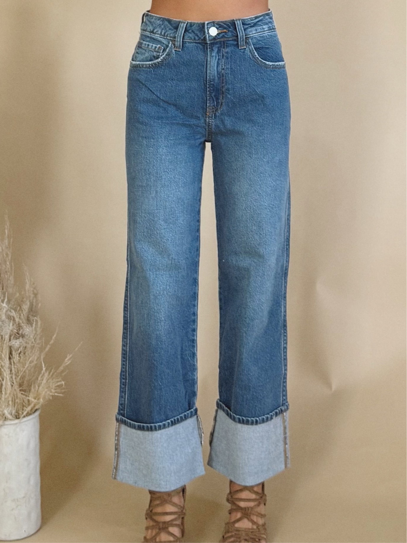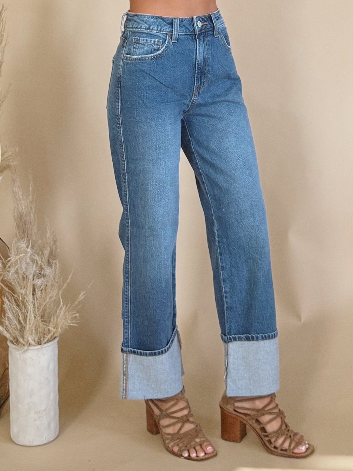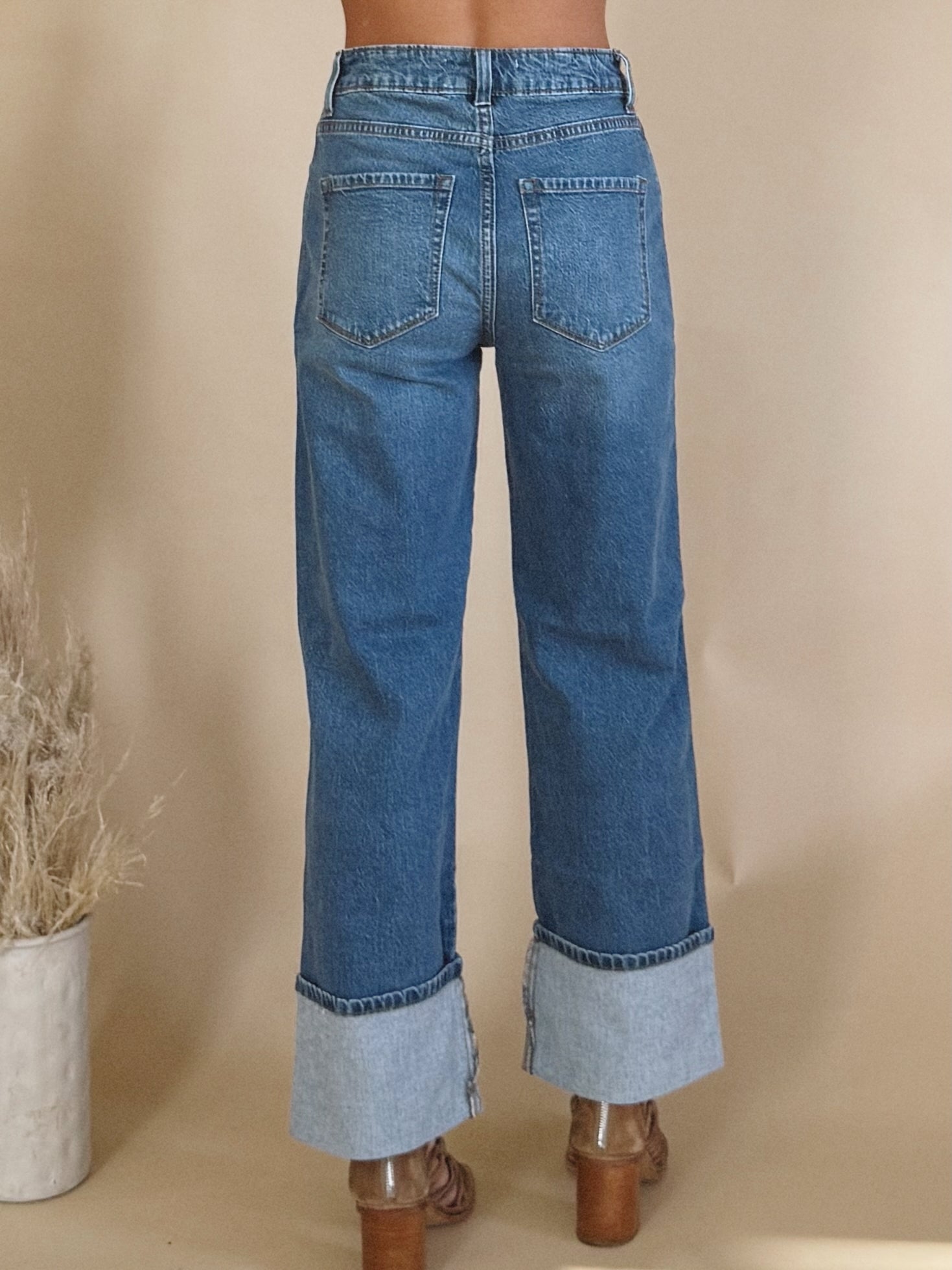 The Aubrey Jean is a medium wash jean with a cuff.