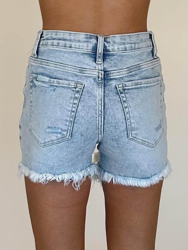 The Lenlee Shorts are a light wash, high waisted, distressed short.