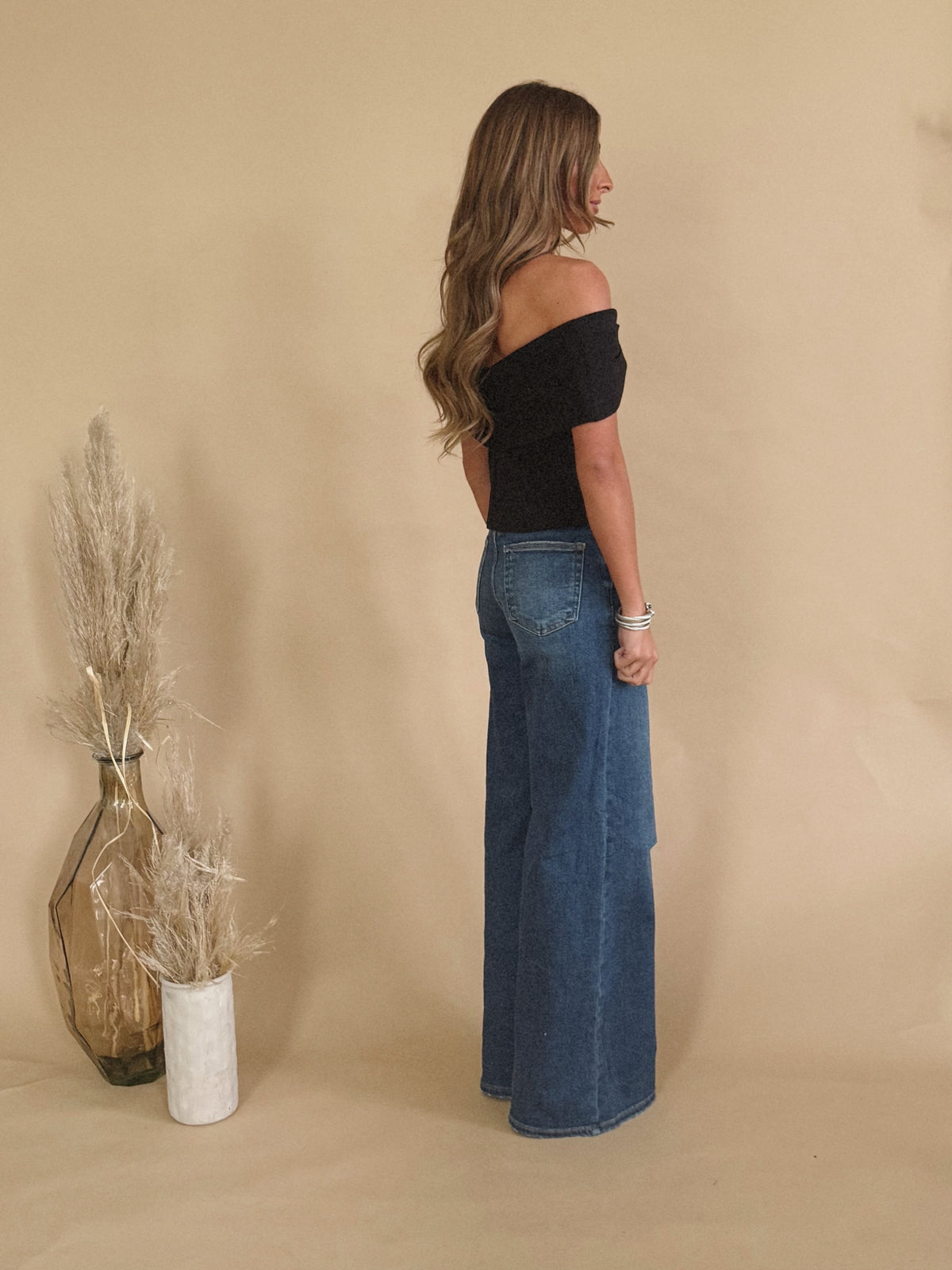 The Colleen Top is a black off the shoulder top with a bow-like detail. Perfect for upcoming holiday season.