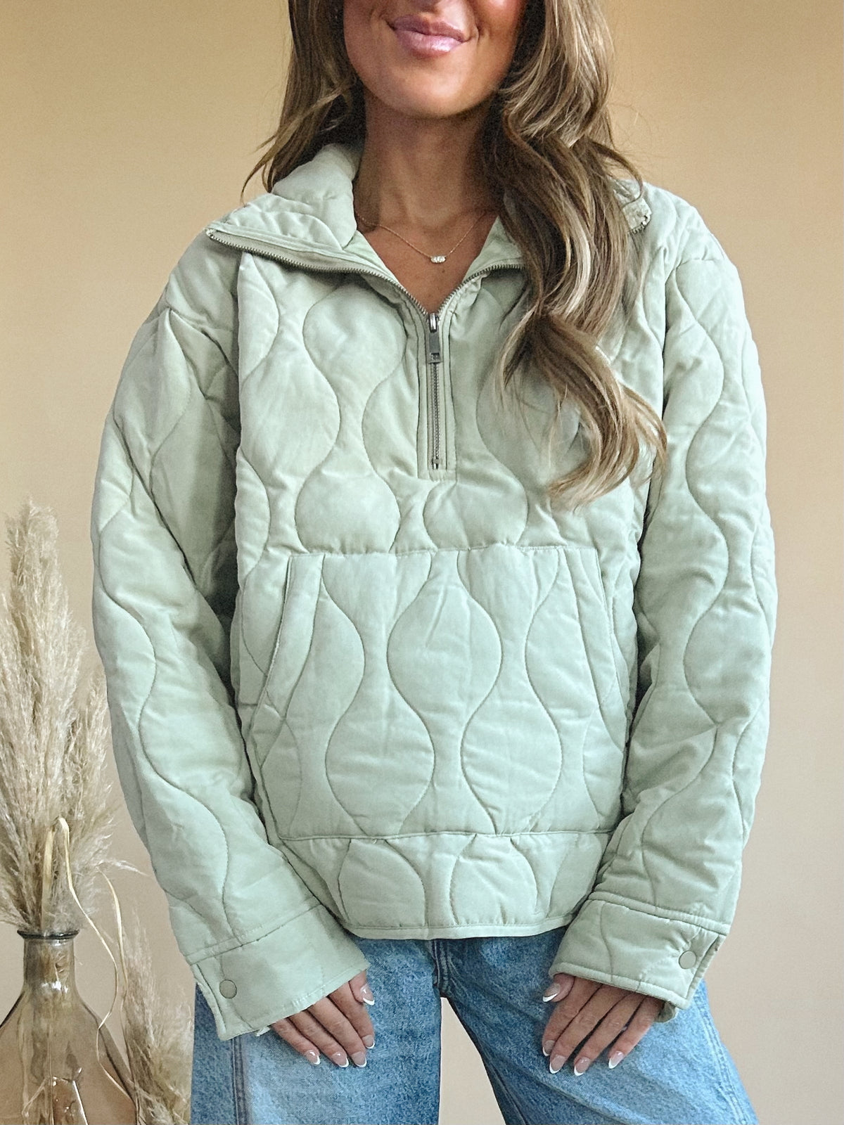 The Lakelyn Pullover is a quilted, quarter zip, pullover with an oversized fit. Could be styles with leggings and boots for a cute and cozy fall look.
