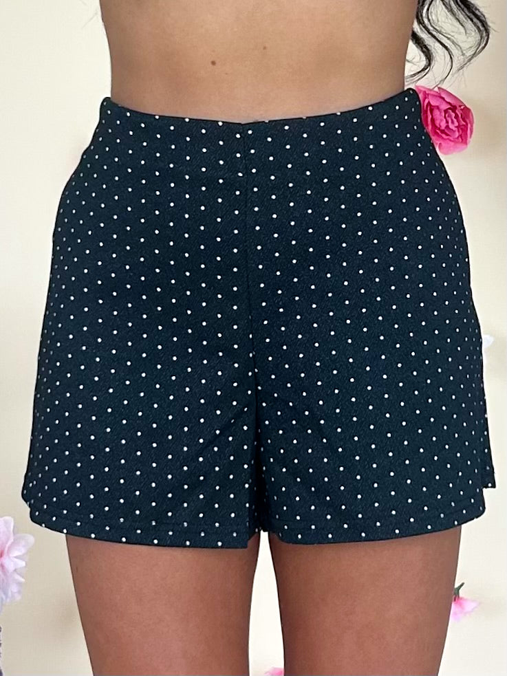 The Melana Set is a polka dot two piece set featuring a strapless top and shorts.
