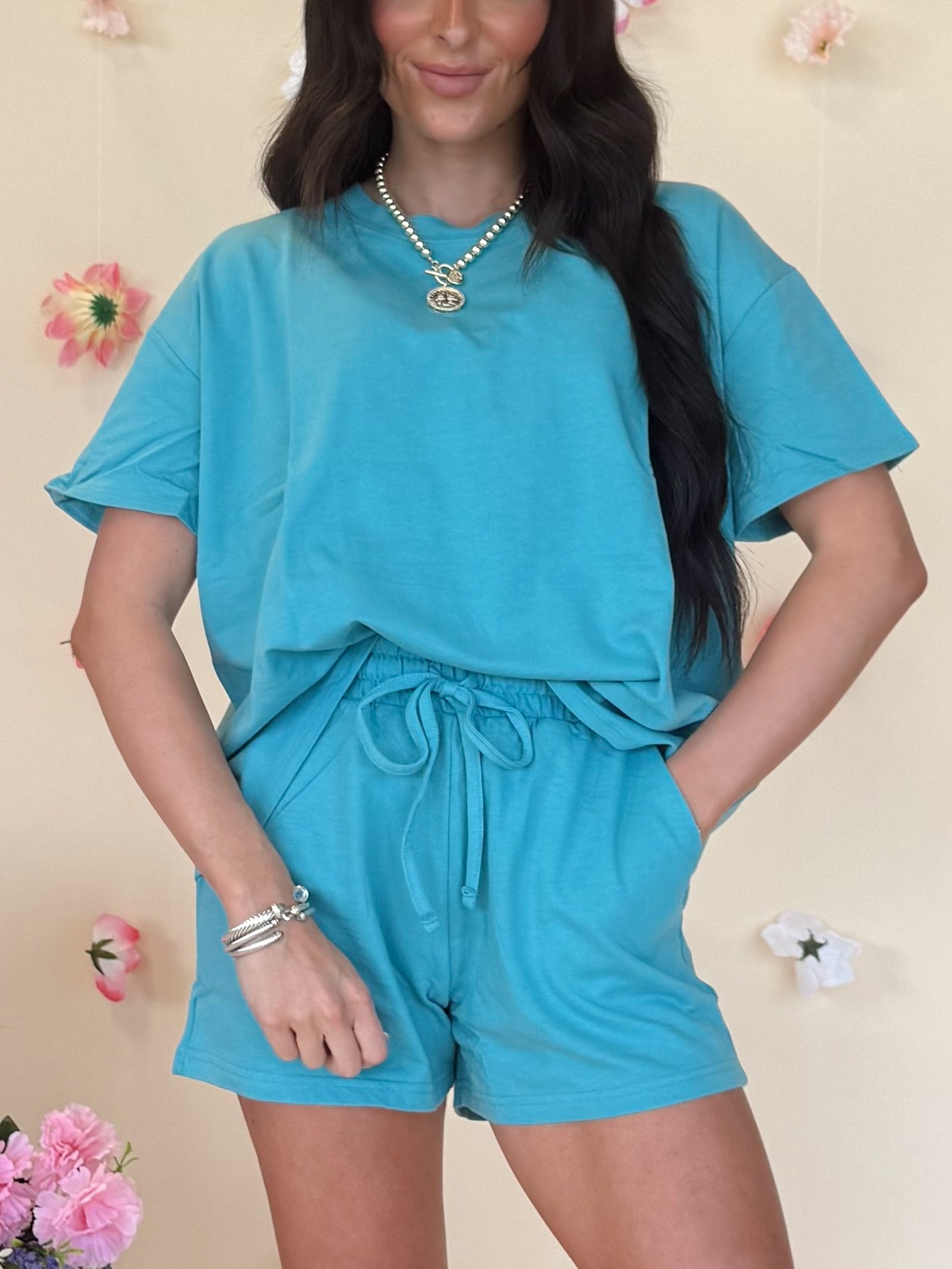 The Terry Set is a French Terry short sleeve top and shorts set.