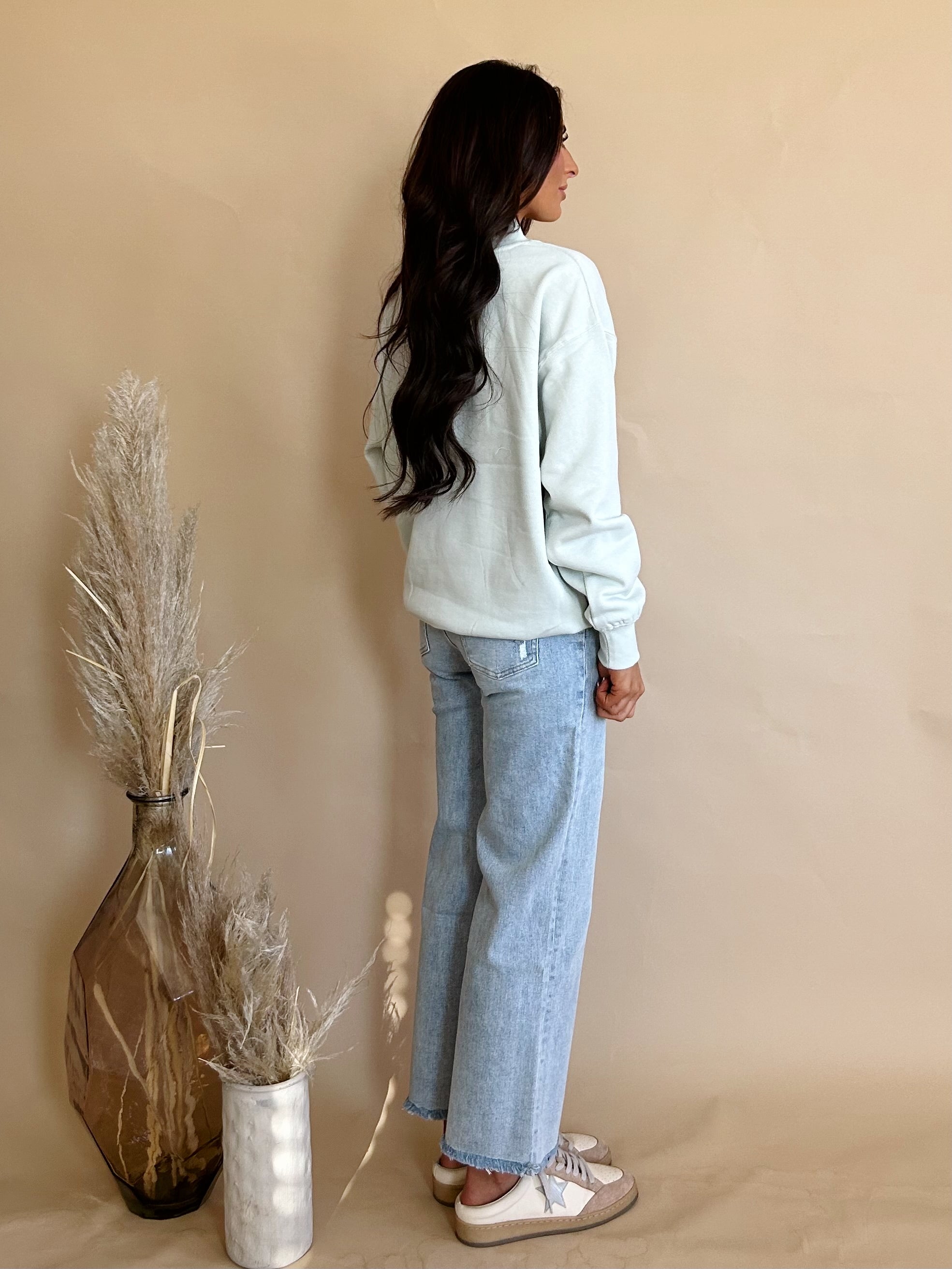 The Amen Mockneck is a Mockneck sweatshirt with block letters “AMEN”.