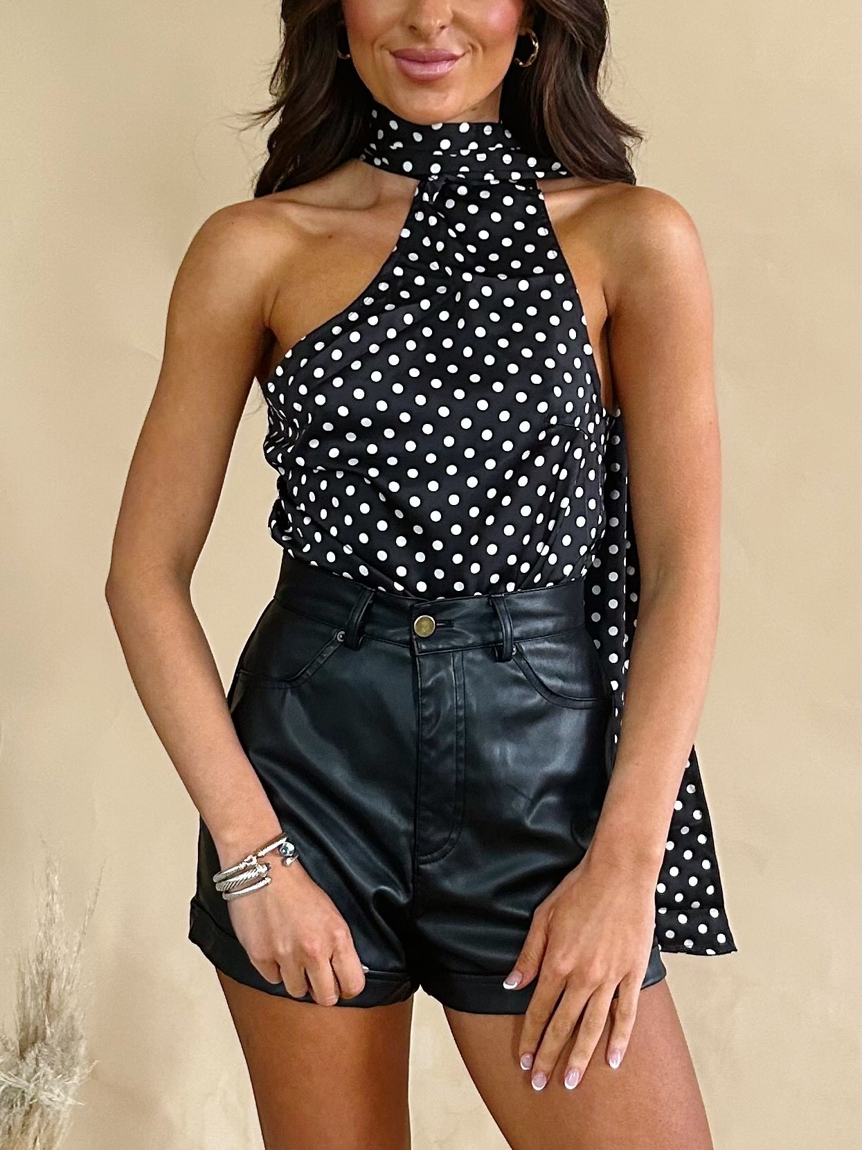 The Tiffany Top is a one shoulder top with a scarf detail.