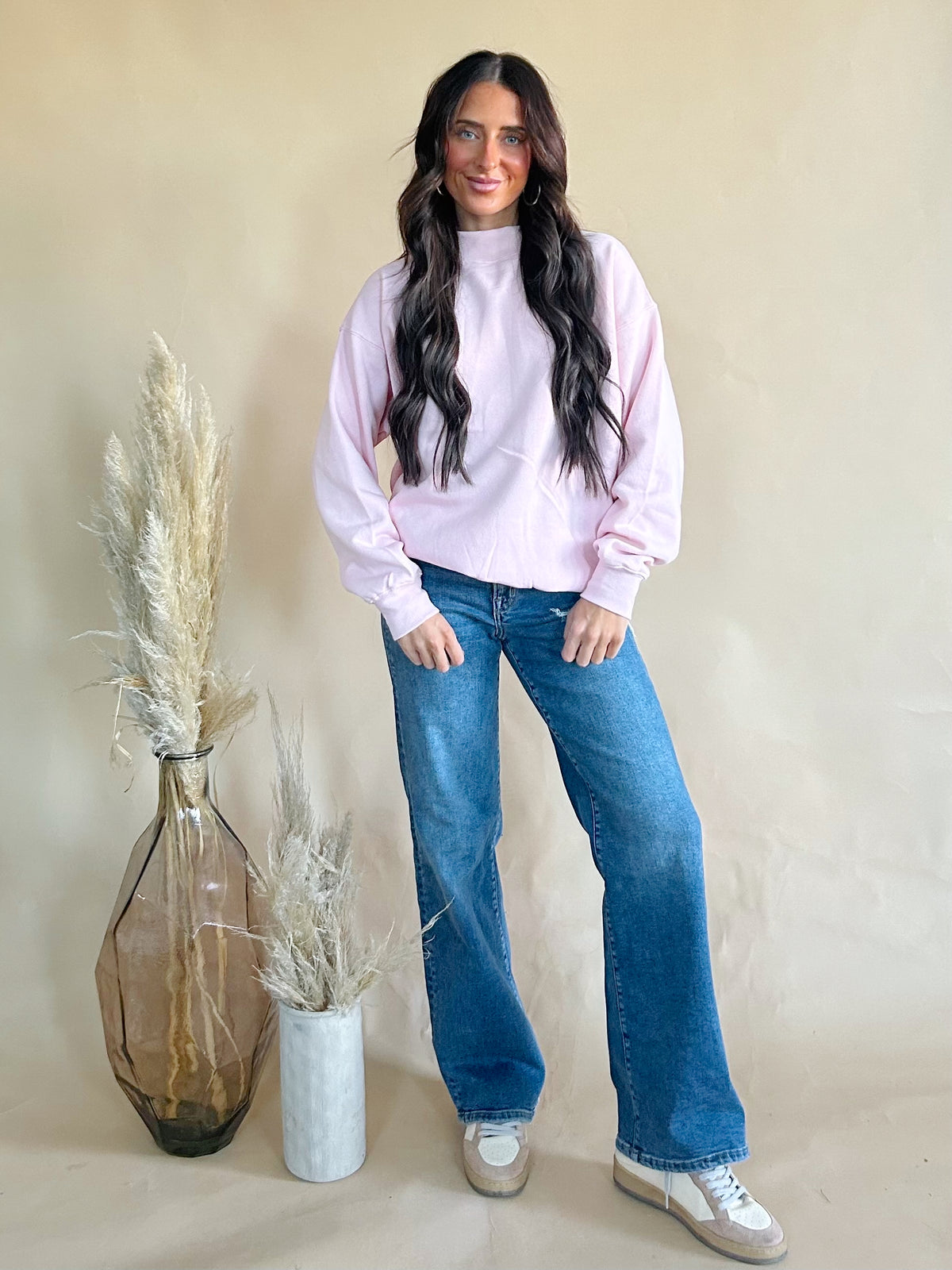 The Amanda Mockneck is a solid color sweatshirt with a Mockneck detail.